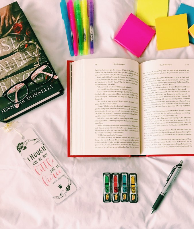 I’ll be annotating—full out highlight, writing, post-its—my copy of These Shallow Graves by Jennifer Donnelly!